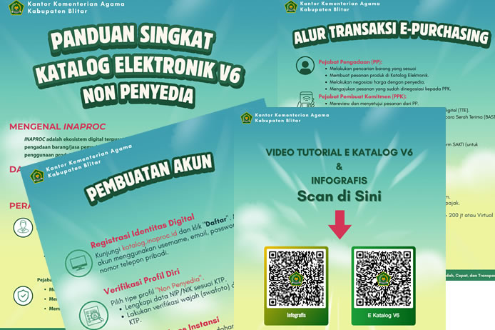 Senin, 6 Oktober 2025 Fungsional Pengadaan Barang dan Jasa Kankemenag Kabupaten Blitar melakukan sosialisasi Standar Operasional Prosedur (SOP) Pengadaan Barang/Jasa Pemerintah Melalui E-Katalog Versi 6. Sosialisasi ini dihadiri oleh JFT dan CPNS Pengelola Pengadaan Barang dan Jasa Kankemenag Kabupaten Blitar. Standar Operasional Prosedur (SOP) Pengadaan Barang/Jasa melalui E-Katalog Versi 6…